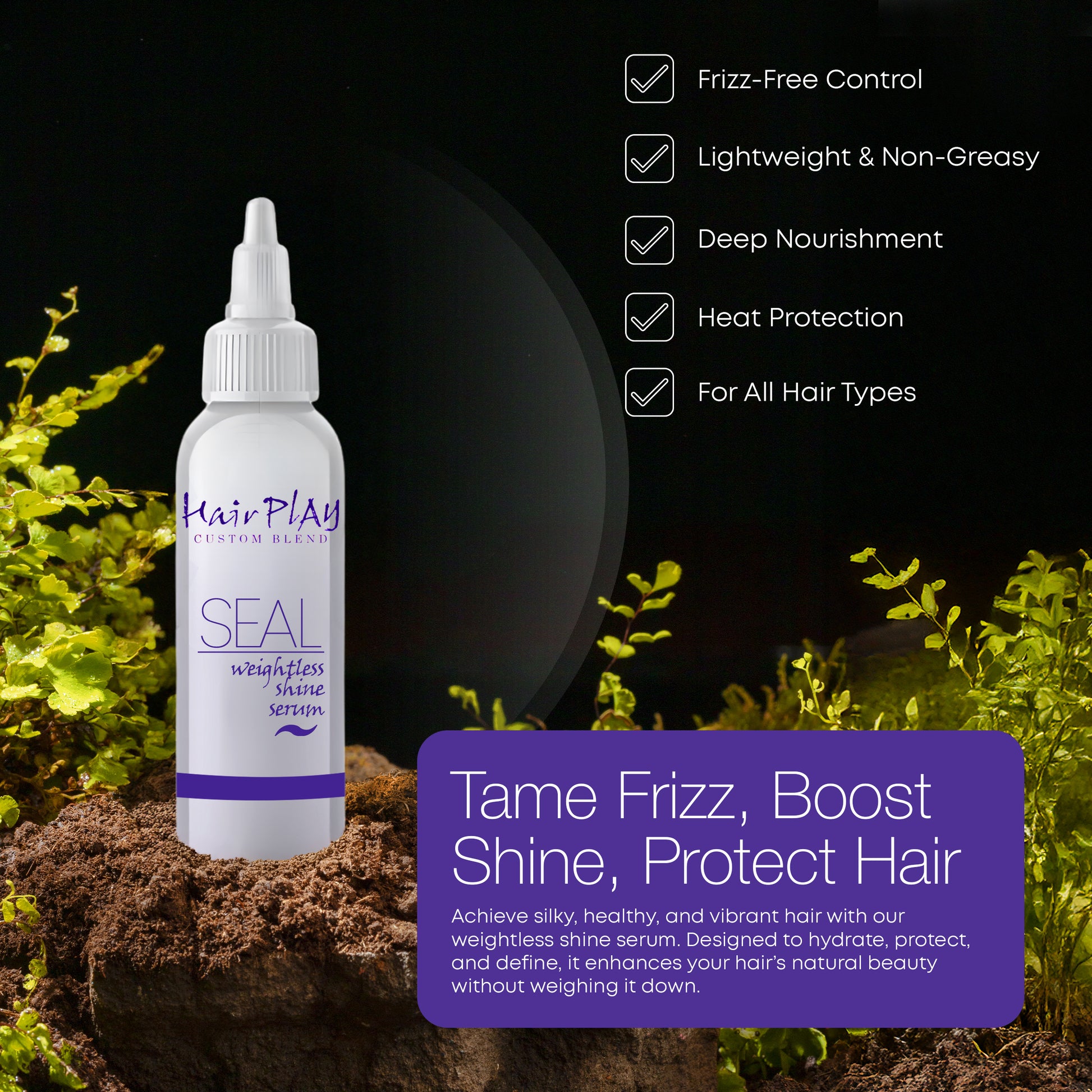 Seal weightless serum melts into your mane to increase moisture, eliminate frizz, and maximize shine. Works on all hair types - wet or dry, curly or straight.